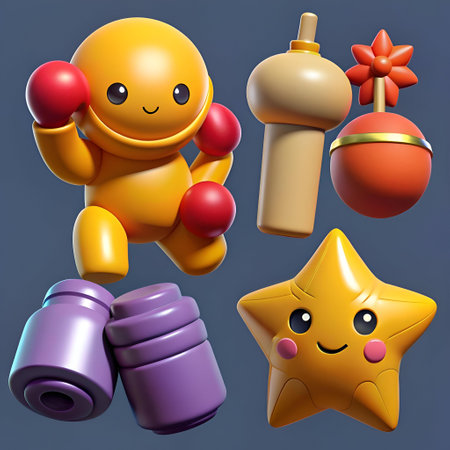 Cute and colorful 3D cartoon icons perfect for mobile apps. games. and social media.