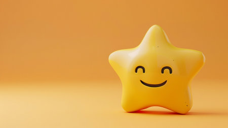 A cheerful yellow star with a smiling face resting on a vibrant orange background, evoking feelings of joy and positivity. Perfect for creative projects.
