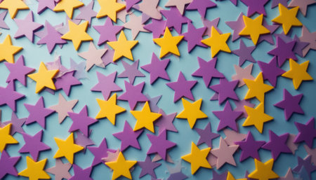 A vibrant array of yellow and purple stars is playfully scattered across a soft blue backdrop, creating a whimsical and cheerful atmosphere. This delightful composition evokes feelings of joy and creativity, perfect for projects that celebrate fun and imagination.