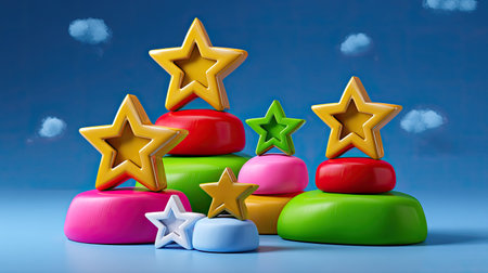 This vibrant image features colorful star-shaped stacking toys, designed to spark creativity and enhance learning through playtime for children in a bright atmosphere.