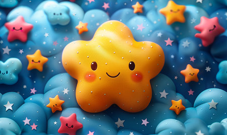 Cute 3D cartoon star with a big smile. perfect for adding a touch of fun and whimsy to your designs. Great for children's products. social media graphics. and apps.
