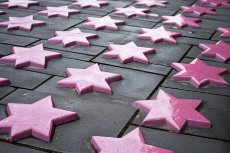 Aesthetic Delight: Pink Stars Illuminate Gray Tiled Street Sidewalk - AR 3:2