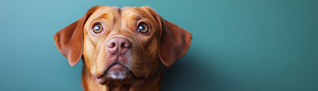 Surprised brown dog looking sideways, green background, puzzled and confused expression