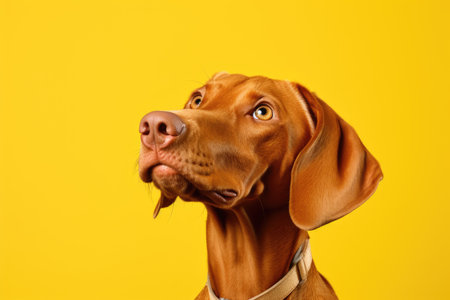 cute hungarian vizsla puppy in studio on yellow background, AI Generated