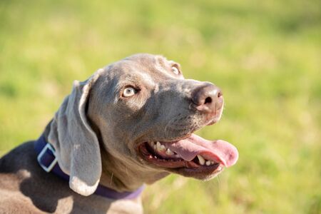Close-up portrait of an weimaraner dog