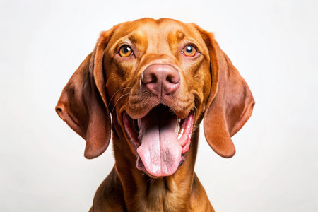 funny dog with funny muzzle. Hungarian vizsla on a white background