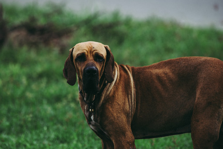 Dogue de Bordeaux - Portrait of a dog in the rain