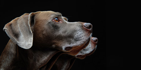 Hungarian Vizsla dog portrait on black background with copy space