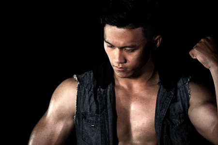 Asian muscle men posing muscle six abs on the black background | Asian Sexy Men fashion