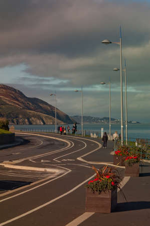 The Cliff Walk Bray to Greystones with beautiful coastline, cliffs, boulder stone wall and turquoise sea, Ireland
