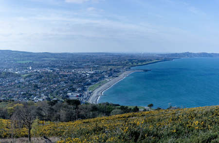 Scenic view from the summit of Bray Head, County Wicklow, Ireland. Summer coastal landscape.