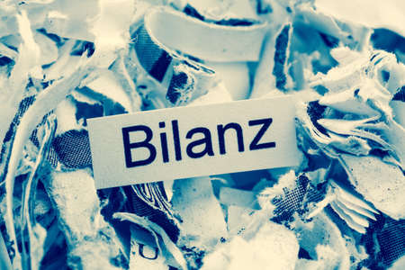 shredded paper with keyword balance, symbol photo for data destruction, accounting, and economic analysis