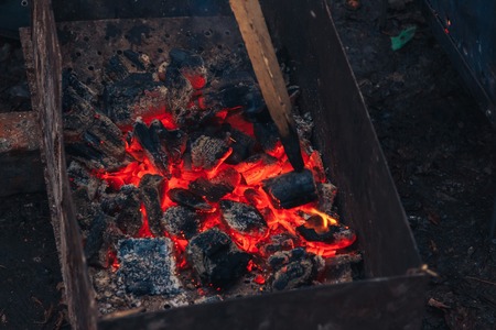 Burning coals for grilling night time
