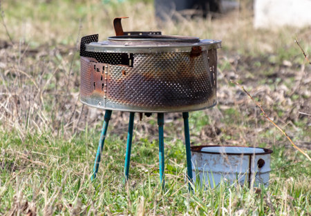 Round metal barbecue in nature.