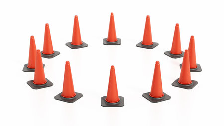 Traffic cones isolated on white background. 3D illustration.