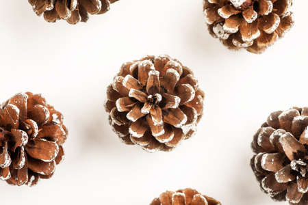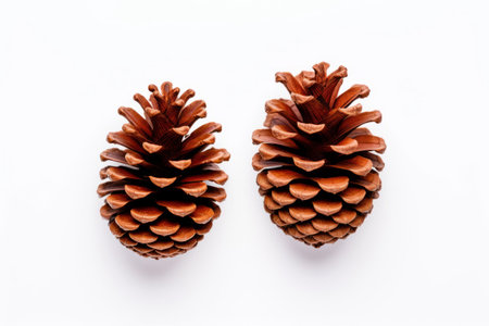 Aesthetic Pinecones: Captivating Top-View Shot on White Background with Copy Space