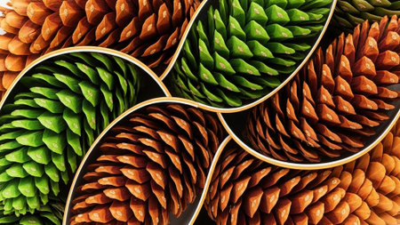 pine cones arranged in a decorative pattern, created with generative ai