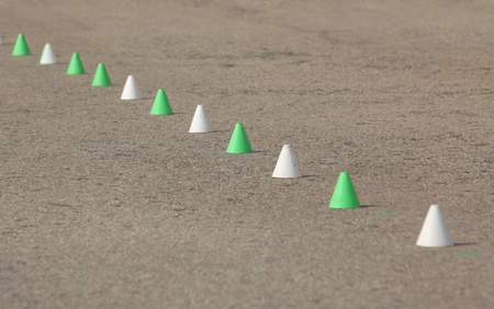 Cone markers on the green grass playground