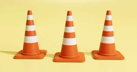 3D traffic cones for caution and under construction concept on pastel background, 3D illustration