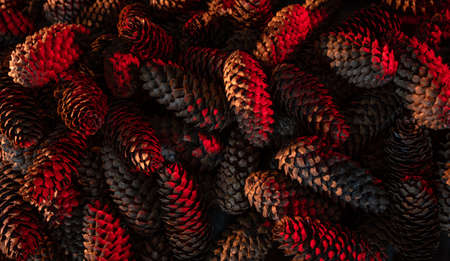 Heap of fir cones in modern colors. Natural background