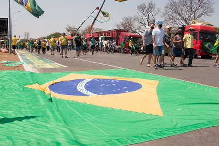 Araçatuba, State of São Paulo, Brazil, October 2018 - Brazilians in patriotic manifestation - Cult of the colors of the Brazilian flag - Brazilian independence green and yellow