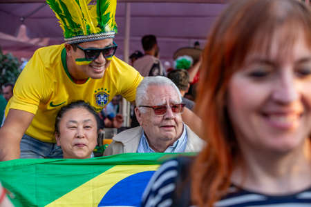 ROSTOV-ON-DON, RUSSIA - JUNE 17, 2018: Group of Brazilian soccer fans