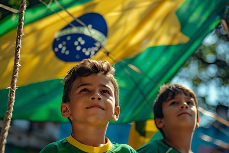 Generative AI Image of Boys Children with Brazilian Flag Celebrate Brazil Independence Day
