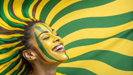 Happy Woman with Brazilian Flag Face Paint Celebrating National Pride