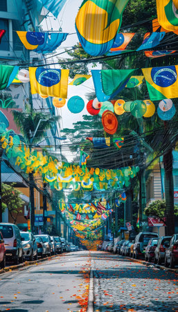 Vibrant brazilian independence day street celebration with colorful flags and decorations
