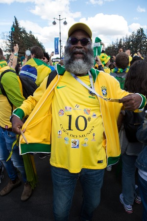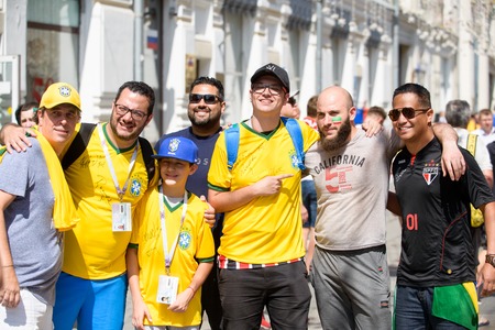 ROSTOV-ON-DON, RUSSIA - JUNE 17, 2018: Group of Brazilian soccer fans