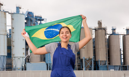Holding a Brazil flag. Farmer at coffee plantation holding Brazilian flag.