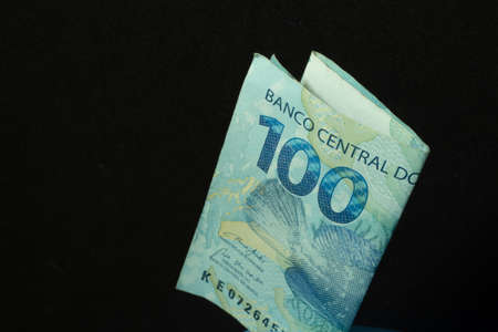 Brazilian one hundred reais banknote with black background