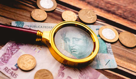 Money, Brazil, Money, Real, Reais. Real currency, money from Brazil. Brazilian banknotes in close up.