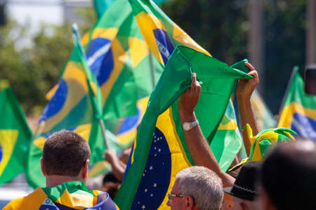 Salvador, Bahia, Brazil - March 13, 2016: Protesters with Brazilian flags call for the impeachment of Dilma Ruosseff. Salvador, Brazil