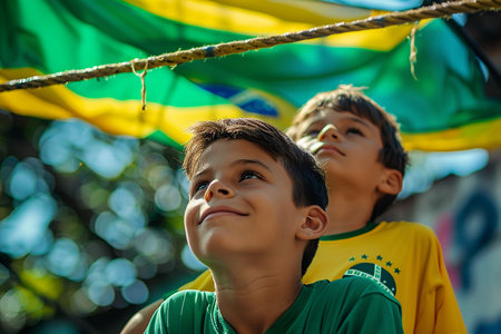 Generative AI Image of Boys Children with Brazilian Flag Celebrate Brazil Independence Day