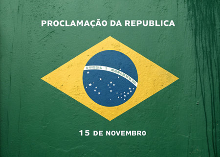 Illustration of the flag of Brazil. Independence Day. September 7. vector symbol of the republic. Brazil's flag. Stylized. Copy space with Brazilian symbol.