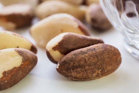brazil nut on a white acrylic background.