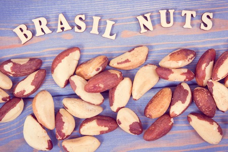 Vintage photo, Brasil nuts containing natural minerals and vitamin, concept of healthy nutrition