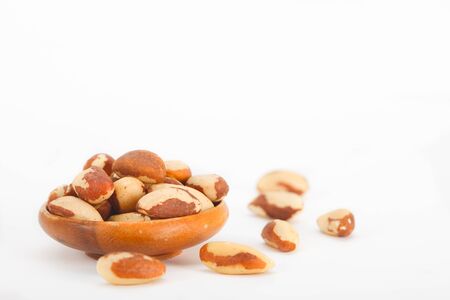 Bowl With Brazil Nut on white background. Bertholletia excelsa. Healthy food.