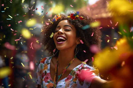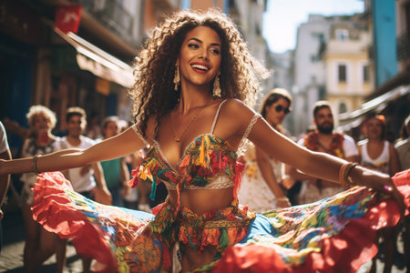 Latin woman dancing on the streets during carnival. Generative AI