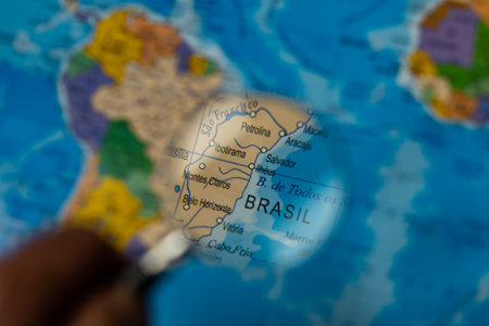 colorful view of brasil magnified with a magnifying glass, blurred background