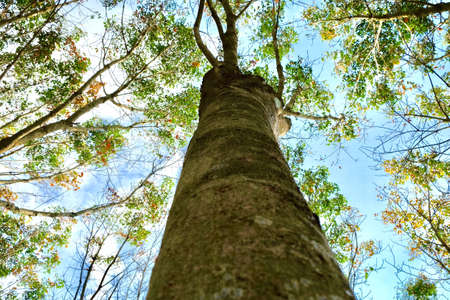 Perspective view of a tall tree in the summer