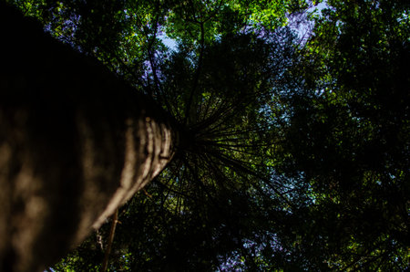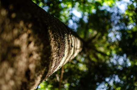 Tree trunk reach for sky, bokeh light, natural, tranquil perspective