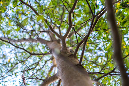Uprisen view of big tree green leaf background tree branch