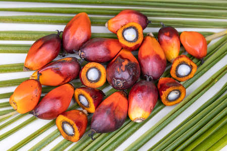 Areca nuts on a palm tree in a park. Nature in the tropics.