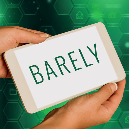 Text sign showing Barely. Business approach only just almost not Near to achieve something or action Narrowly