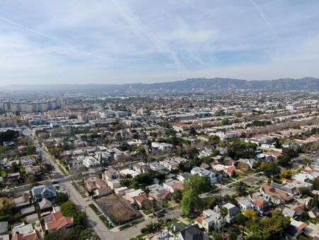 Aerial view of wealthy area with big houses in Central Los Angeles , California. USA