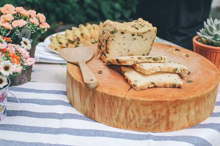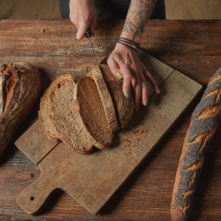 Night fermentation healthy bread sliced on wooden cutting board