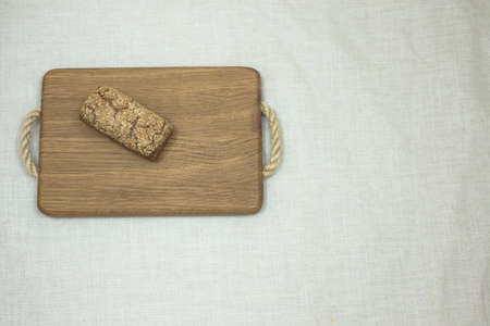 Homemade High fiber natural health food Sliced rye bread on cutting board. Whole grain rye bread with seeds