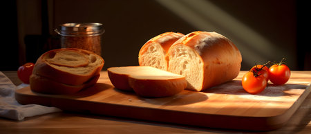 AI Generated. artisan crusty bread slices on wooden board